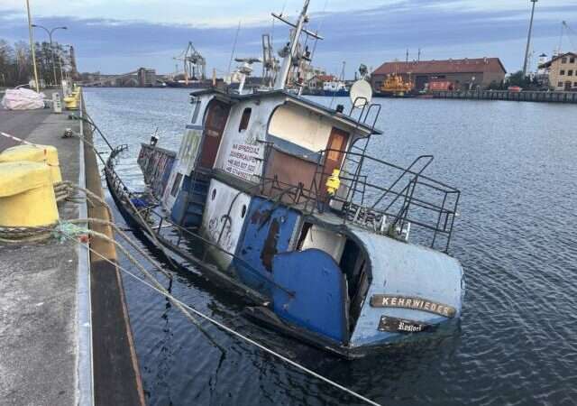 Jednostka od dawna była kłopotem dla zarządcy 🚢, a teraz częściowo spoczęła na dnie basenu portowego. 😬🌊